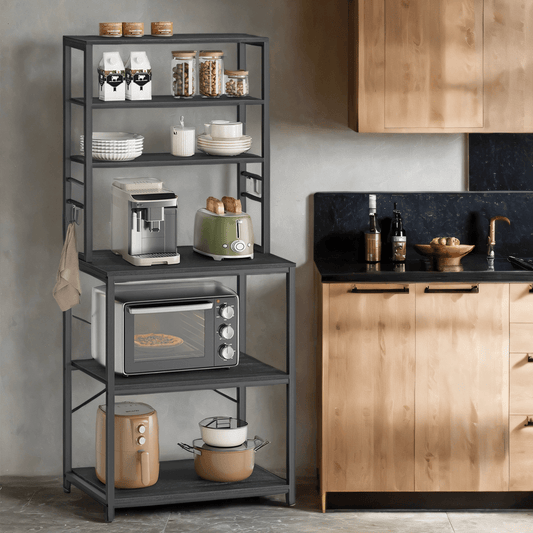 Kitchen Shelf with Power Strip, Microwave Oven Cabinet with Shelves and Hooks
