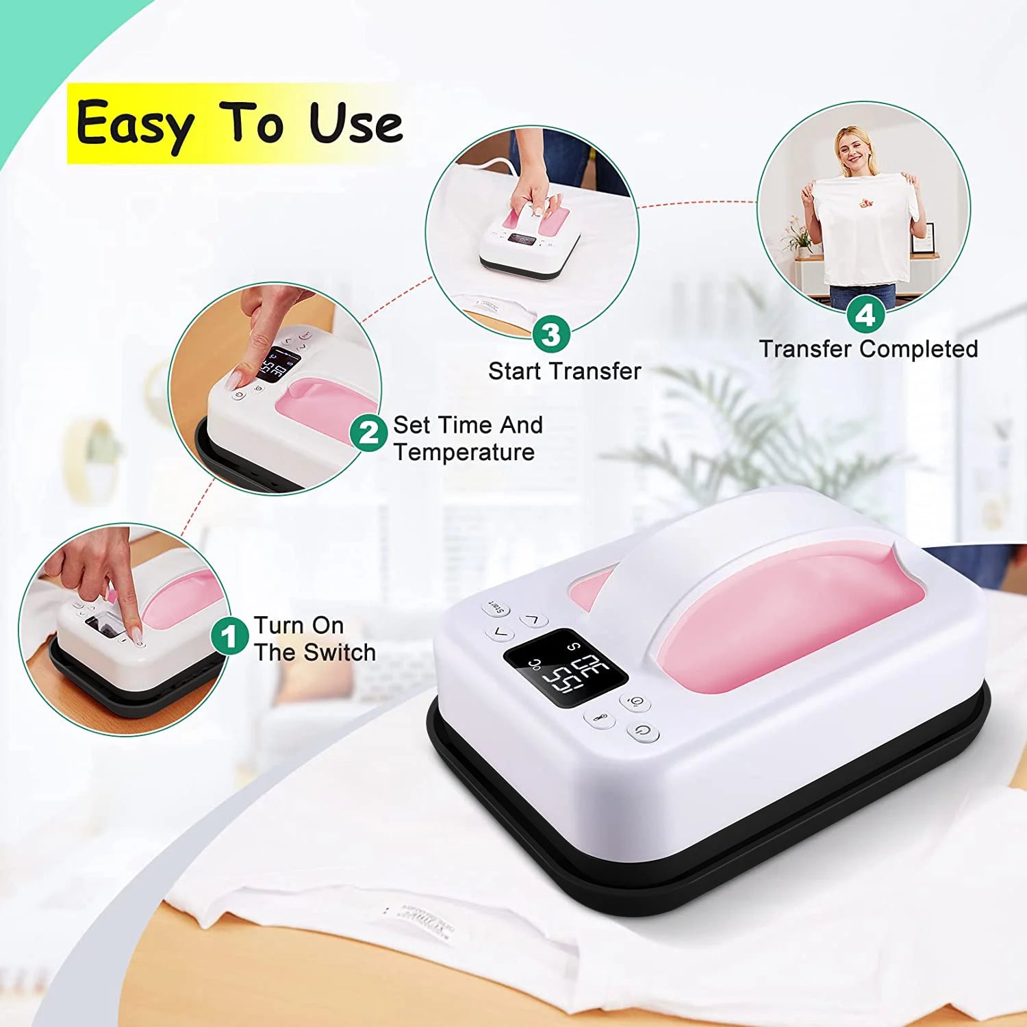 MULTIFUNCTIONAL MINI HOT PRESS: Lightweight, portable, and easy to store, can customize custom patterns for T-shirts, pillows, socks, masks, hats, canvas bags, mobile phone cases, etc., experience the fun of DIY, and can be washed repeatedly.QUICK & EASY IRON HEATING: T-shirt heat press provides quick and even heating, saving time and efficient heat transfer. The t-shirt printing machine is made of high-temperature-resistant materials to avoid accidental burns.
