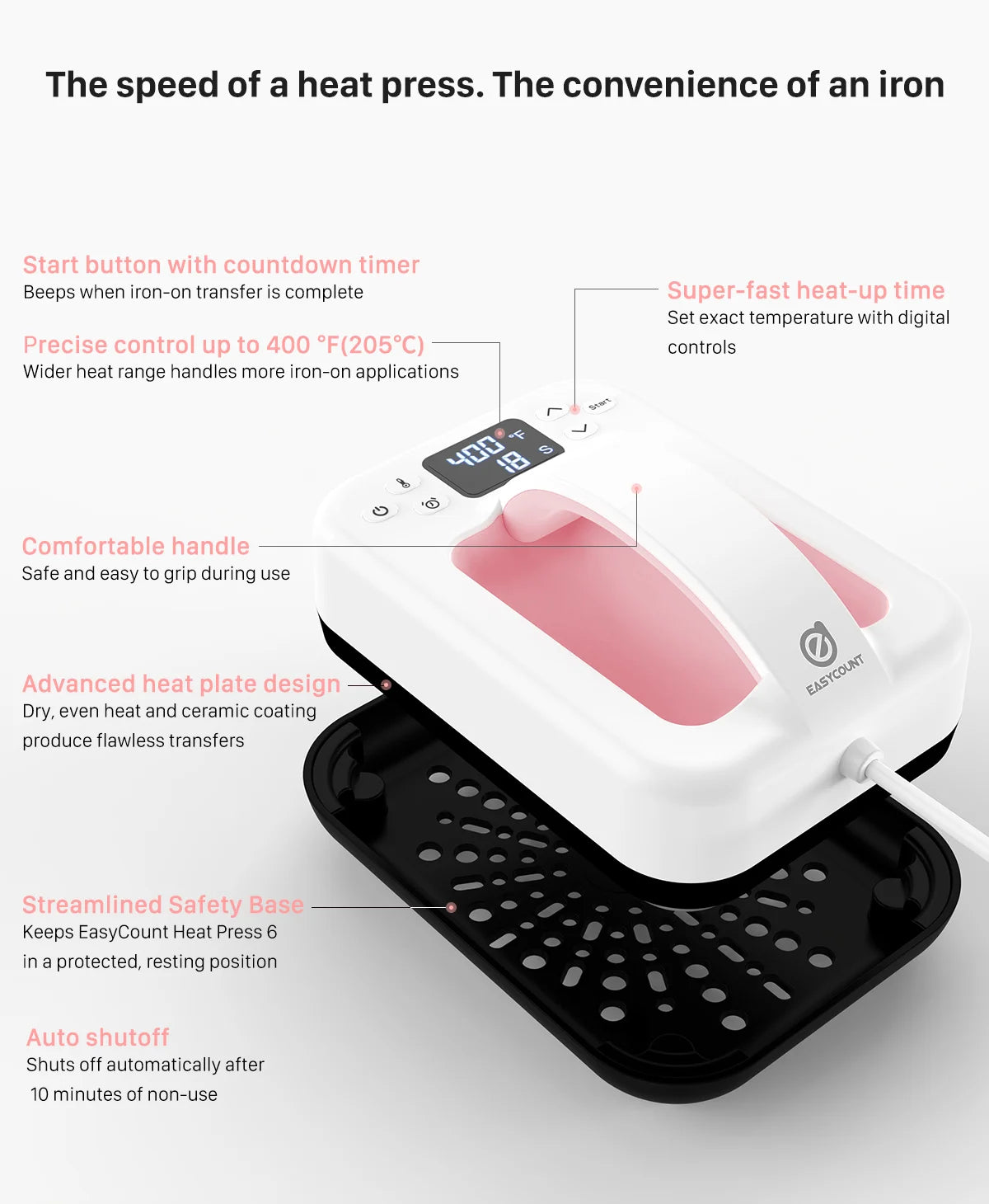 SPECIFICATIONS Brand Name: easycount Certification: CE, FCC, RoHS, WEEE Choice: yes High-concerned chemical: None Model Number: Heat Press Machine Origin: Mainland China Temperature Range: 210℉-400℉ Time Range: 0~30s