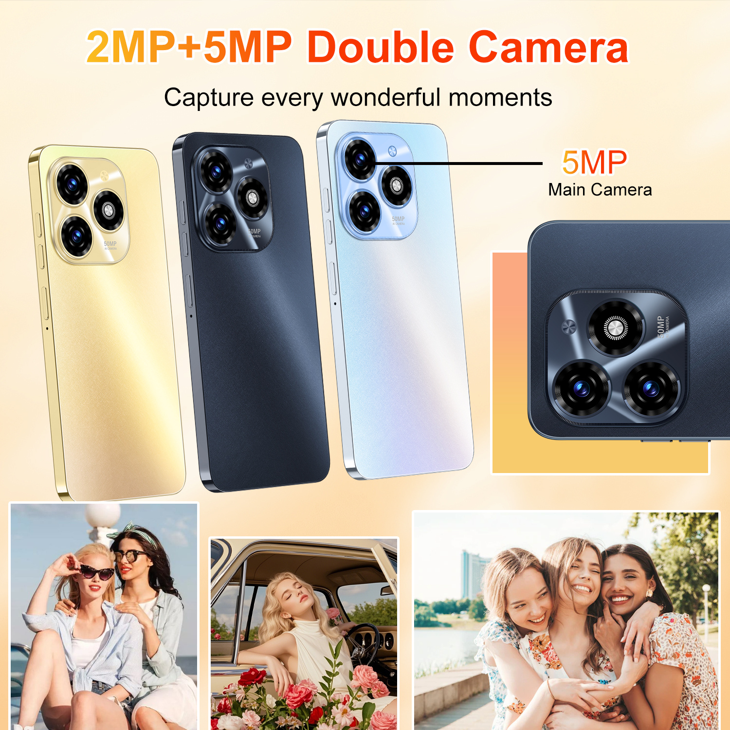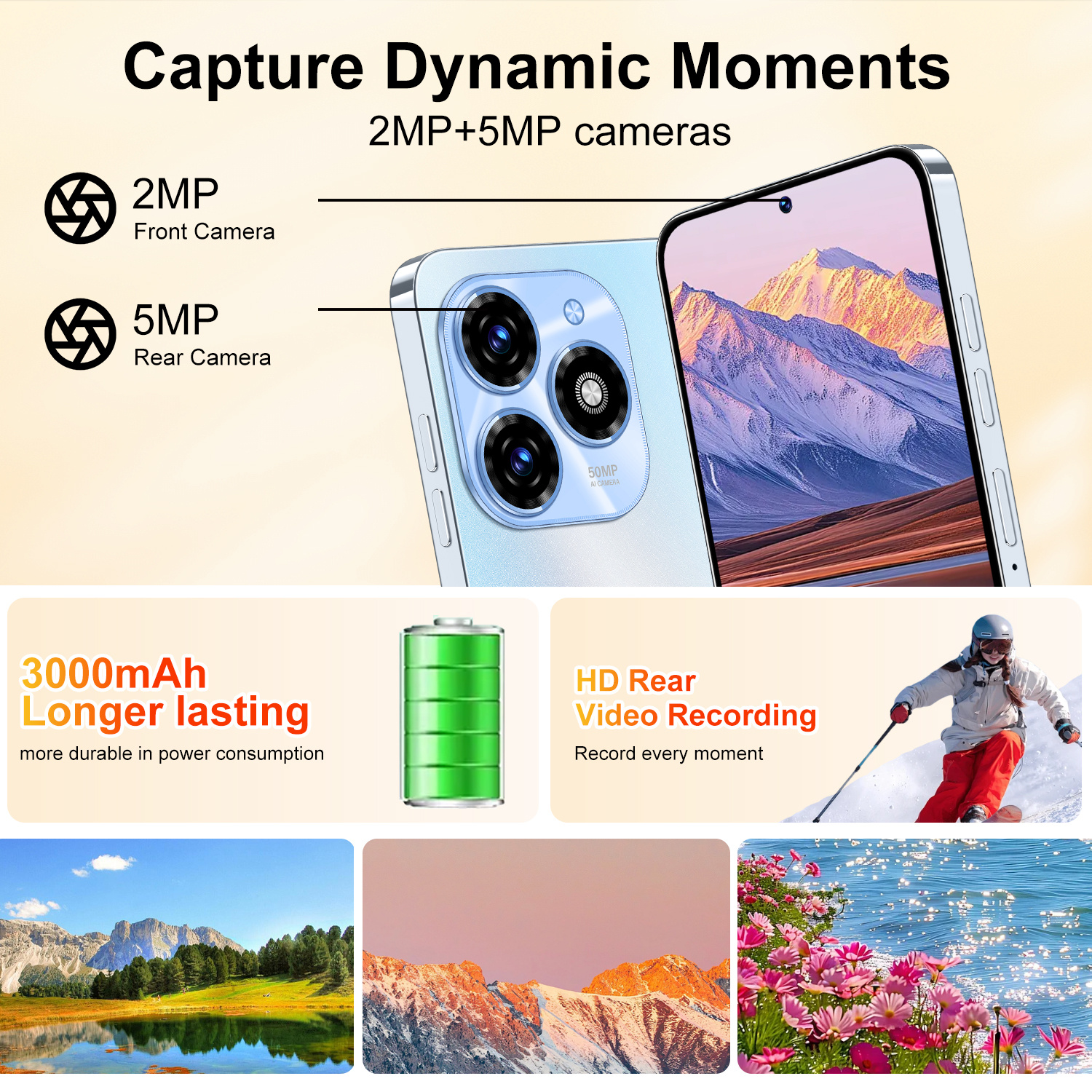 Dual Camera System – 5MP Rear + 2MP Front