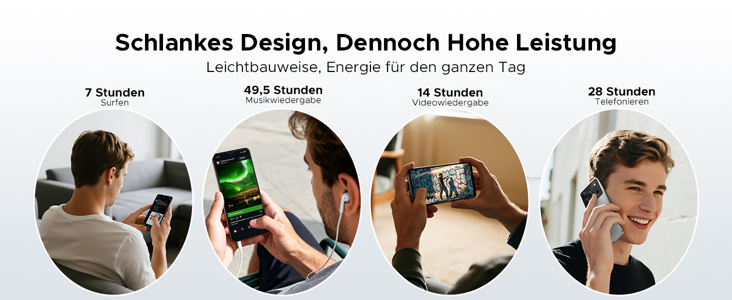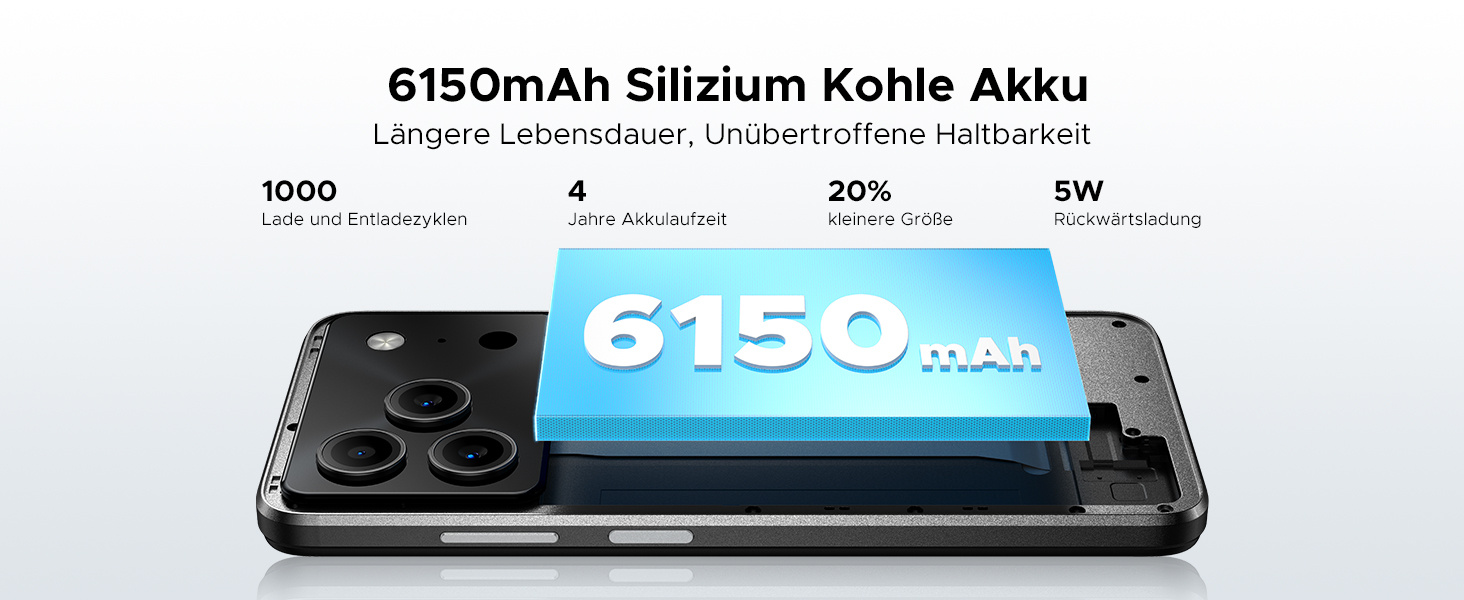 6150mAh Großer Akku + 10W Schnellladung: DOOGEE Note 56 Android 16 Smartphone verfügt über einen 6150mAh großen Akku aus negativen Siliziumzellen, der eine schnelle Ladegeschwindigkeit, eine längere Akkulaufzeit, starke strukturelle Stabilität und hohe Sicherheit bietet und auch bei niedrigen Temperaturen den größten Teil der Leistung behält. Gleichzeitig ist das Handy ohne Vertrag mit einer 10-W-Schnellladung ausgestattet, was die Ladegeschwindigkeit weiter verbessert