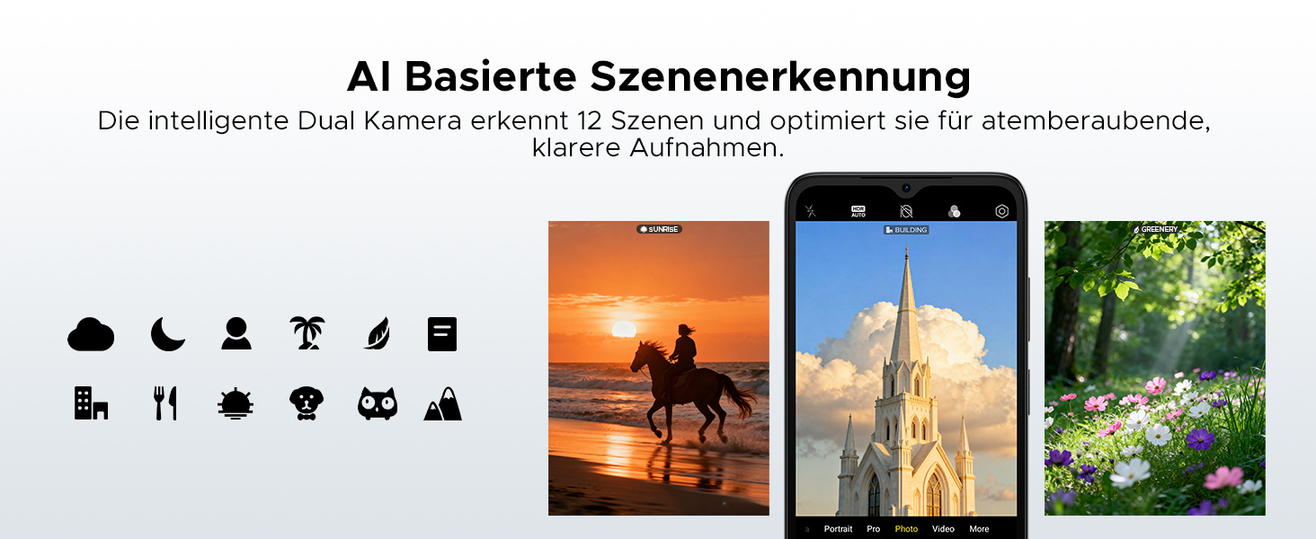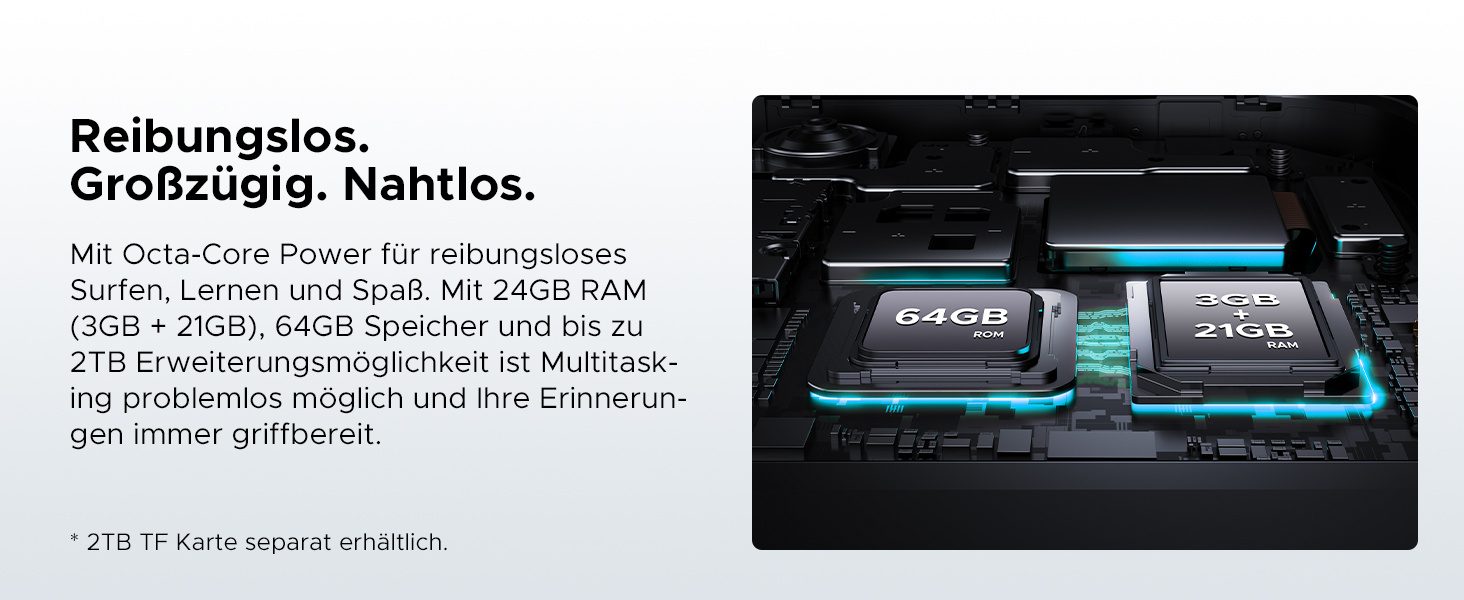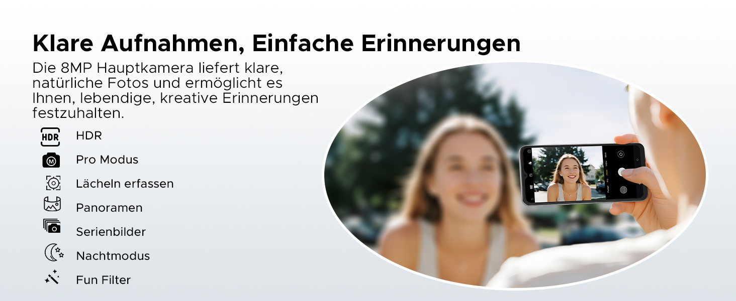 24 GB RAM + 64 GB ROM/ 2 TB TF: DOOGEE Note 56 Handy ohne Vertrag ist mit 24 GB RAM (3 GB + 21 GB) + 64 GB ROM ausgestattet, der Speicher kann auf 2 TB erweitert werden, Sie können viele große Dateien und Spiele herunterladen, sodass Sie sich keine Sorgen um Speicherprobleme machen müssen. Gleichzeitig verfügt das Android-16-Smartphone über eine 8-MP-Hauptkamera und eine 5-MP-Frontkamera, die klare Fotos für den täglichen Bedarf aufnehmen