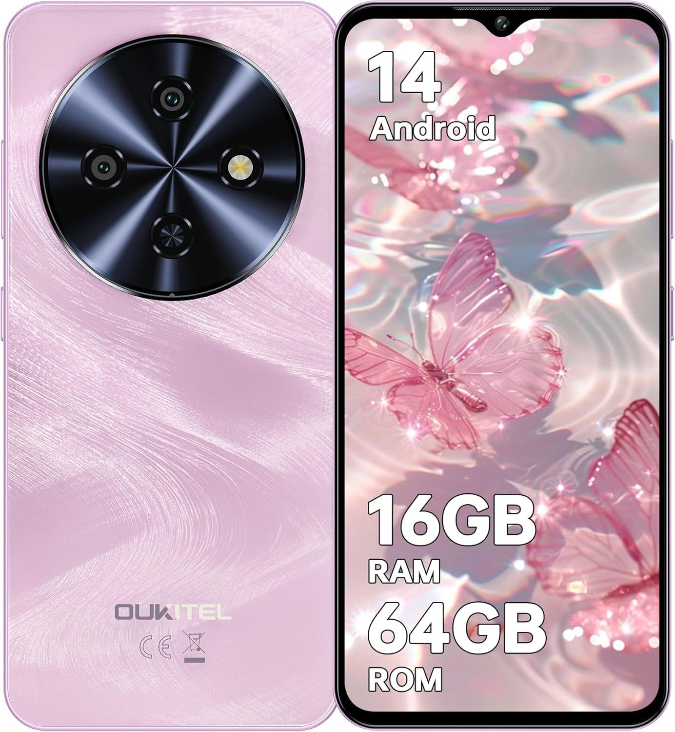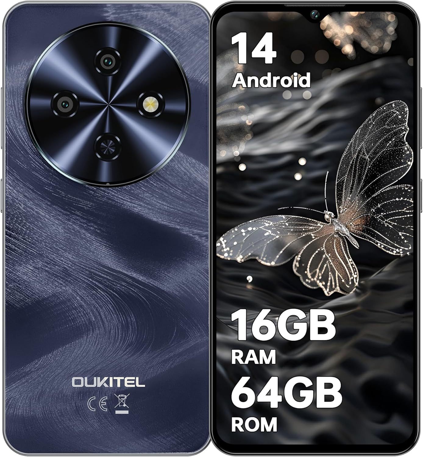 16GB RAM + 64GB ROM/1TB & Octa-core processor: The OUKITEL C5 smartphone features 16GB of RAM (4GB fixed memory + 12GB virtual memory), significantly enhancing device performance with memory expansion technology. 64GB of ROM provides ample storage space for files and photos, expandable up to 1TB via TF card. Powered by an octa-core processor and Android 14, the OUKITEL C5 mobile phone offers smooth gaming performance even during multitasking