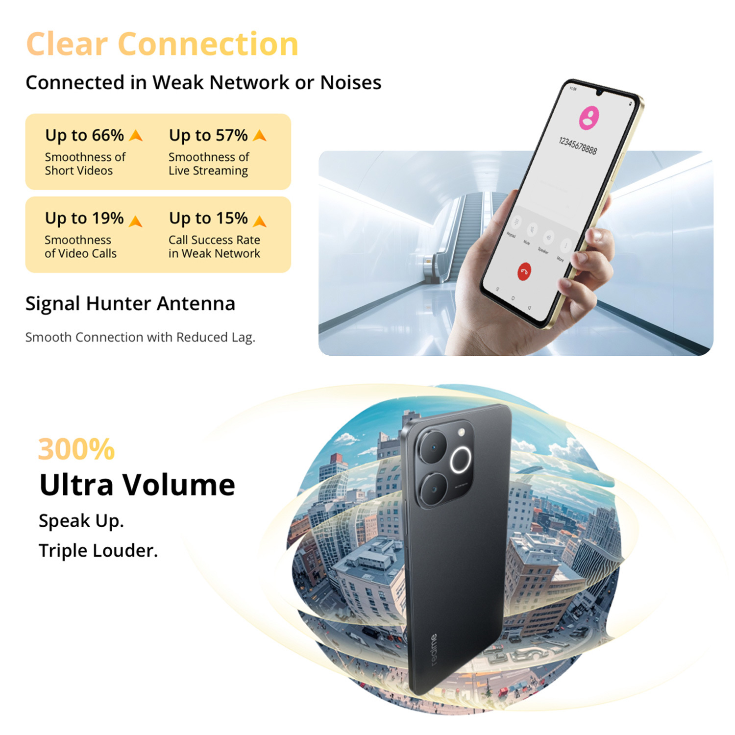 Experience next-level battery life and smooth everyday performance with the realme Note 70T 4G Smartphone (RMX5313). Designed for users who demand reliability, speed, and immersive viewing, this feature-packed Android smartphone combines a massive 6000mAh battery, a 6.75-inch 90Hz display, and a powerful octa-core processor—making it ideal for streaming, multitasking, and extended daily use. Available in 4GB + 64GB, 4GB + 128GB, and 4GB + 256GB storage variants, the realme Note 70T delivers flexible memory options to match your needs.