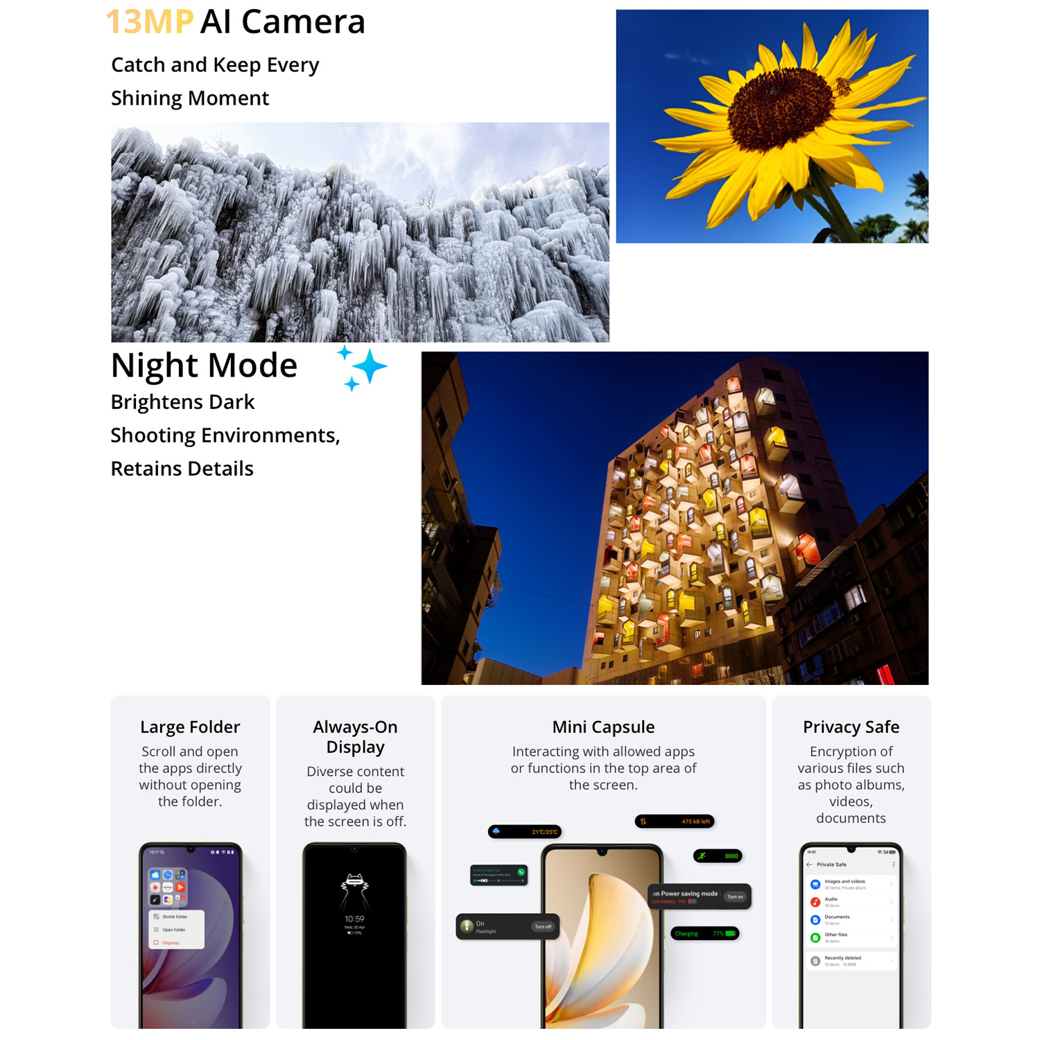 Stay connected longer with the 6000mAh high-capacity battery, built for heavy usage and extended screen time. Long-lasting power for 1–2+ days of normal use Ideal for travel, work, and entertainment Battery Powered / USB Dual Use Energy-efficient Android optimization Perfect for users seeking a long battery life 4G smartphone with a large display.