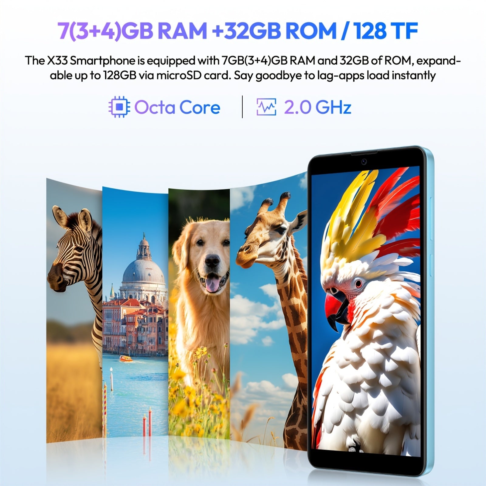 The XGODY X33 is a next-generation Android 15 smartphone featuring a vibrant 6.0-inch Full HD LCD touchscreen with 1920×1080 resolution and a 60Hz refresh rate for crisp visuals and fluid scrolling. Powered by a high-performance octa-core processor and 7GB RAM, this device ensures smooth app switching, responsive gaming, and efficient multitasking. With 32GB internal storage, expandable functionality, and dual SIM dual standby capability, this unlocked 4G LTE smartphone provides flexibility for personal and business numbers on a single device.